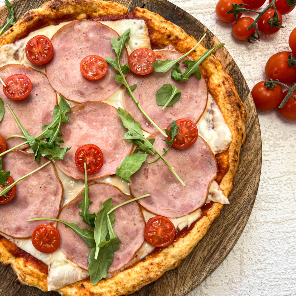 Příprava: Ozdobte pizzu svými oblíbenými ingrediencemi, vložte do trouby a pečte 7 až 10 minut při 200 °C. Dobrou chuť!